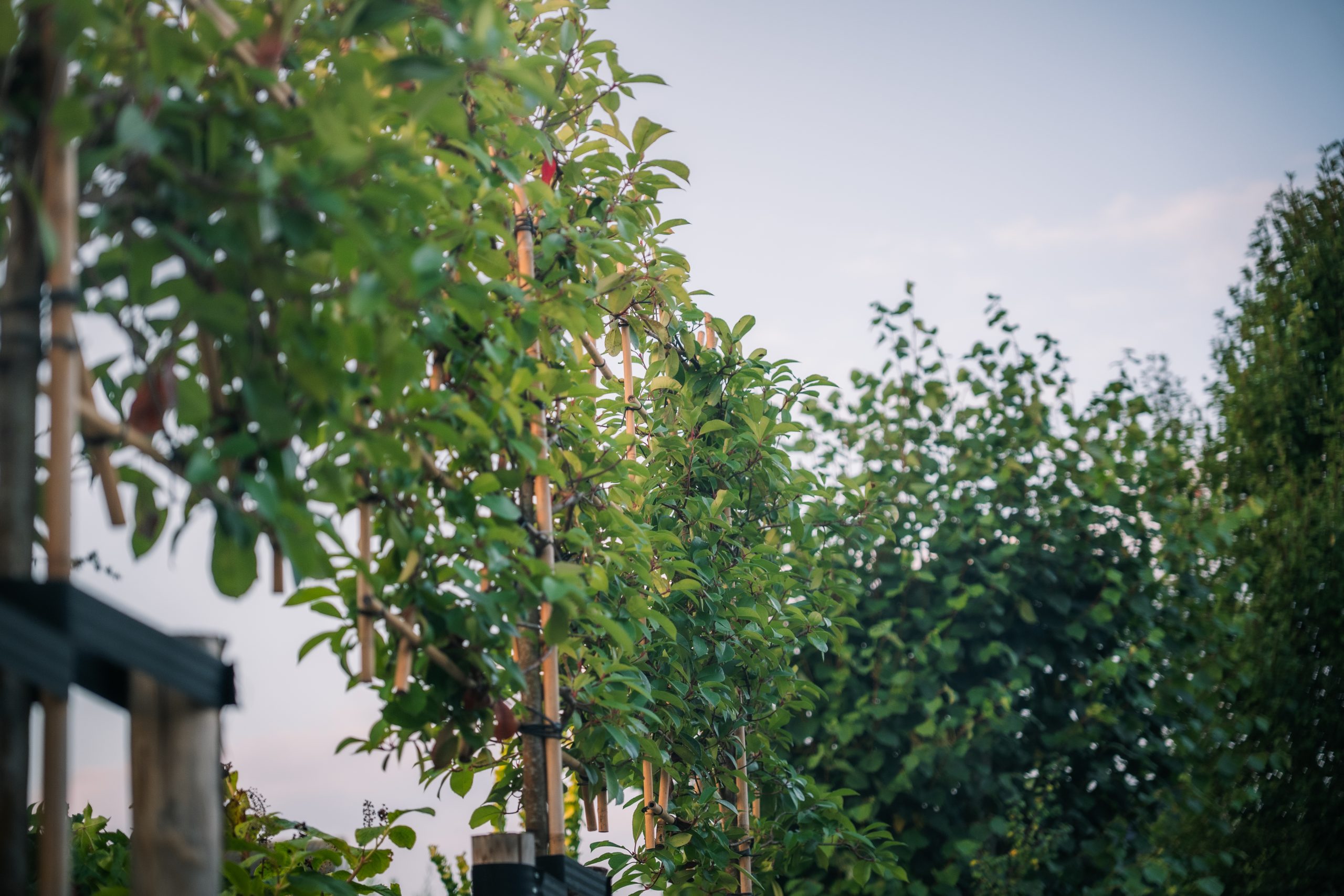 Voor de beplanting zijn mooie leibomen geplant, die zorgen voor privacy rondom het huis zonder het uitzicht te blokkeren.
